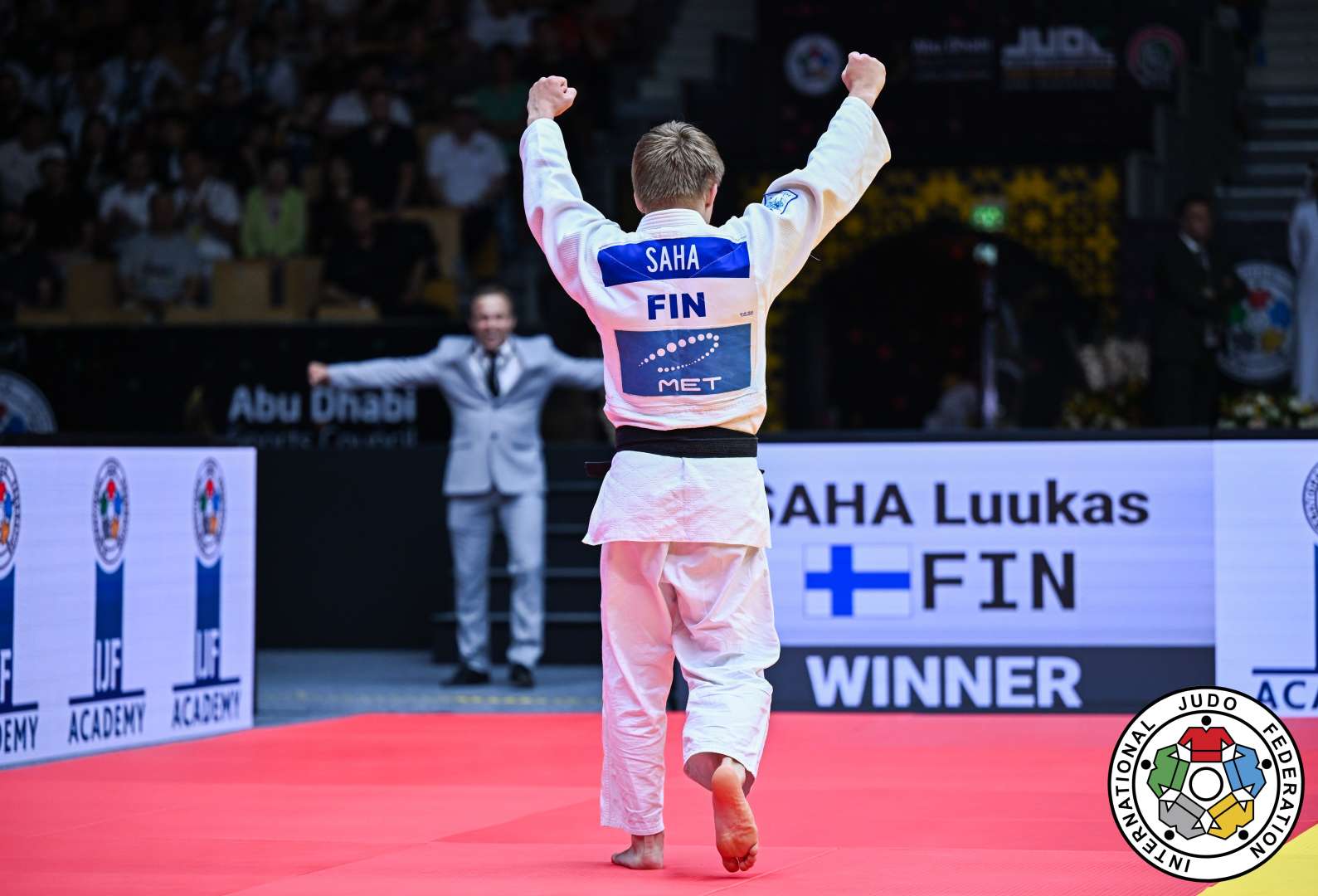 Luukas Saha otti historiallisen pronssin Judon Maailmanmestaruuskilpailuissa Abu Dhabissa. Mitaliottelussa kukistui Tadzikistanin kivikova Nurali Emomali. Samalla varmistui että 66-kiloisissa ottelevan suomalaisen karsintapisteet riittävät Pariisin Olympialaisiin.