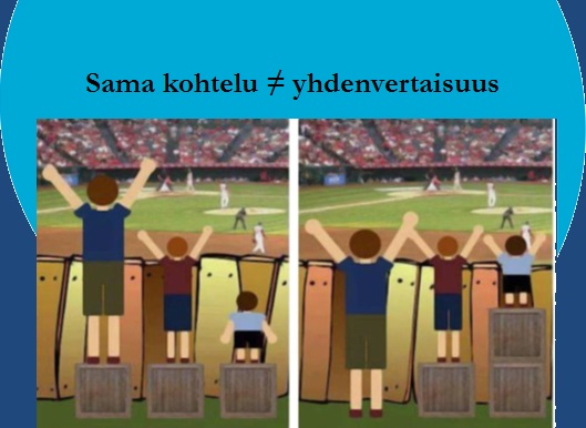 Yhdenvertaisuusperiaatteen mukaisesti kaikki ihmiset ovat tasavertaisia riippumatta heidän sukupuolestaan, iästään, etnisestä tai kansallisesta alkuperästään, kansalaisuudestaan, kielestään, uskonnostaan ja vakaumuksestaan, mielipiteestään, vammastaan, terveydentilastaan, seksuaalisesta suuntautumisestaan tai muusta henkilöön liittyvästä syystä.