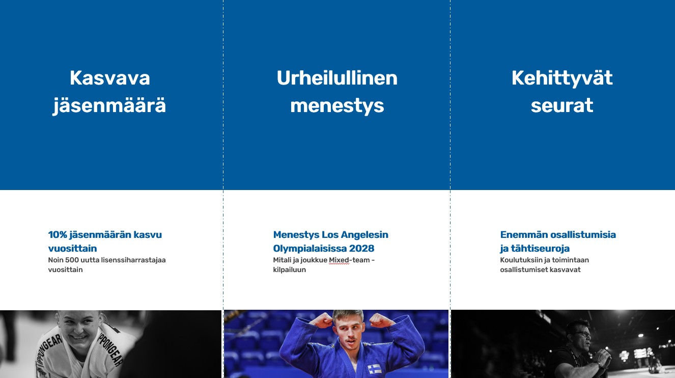 Suomen judon strategia vuosille 2025-2028 on selkeä: kasvava jäsenmäärä, kehittyvät seurat ja urheilullinen menestys.